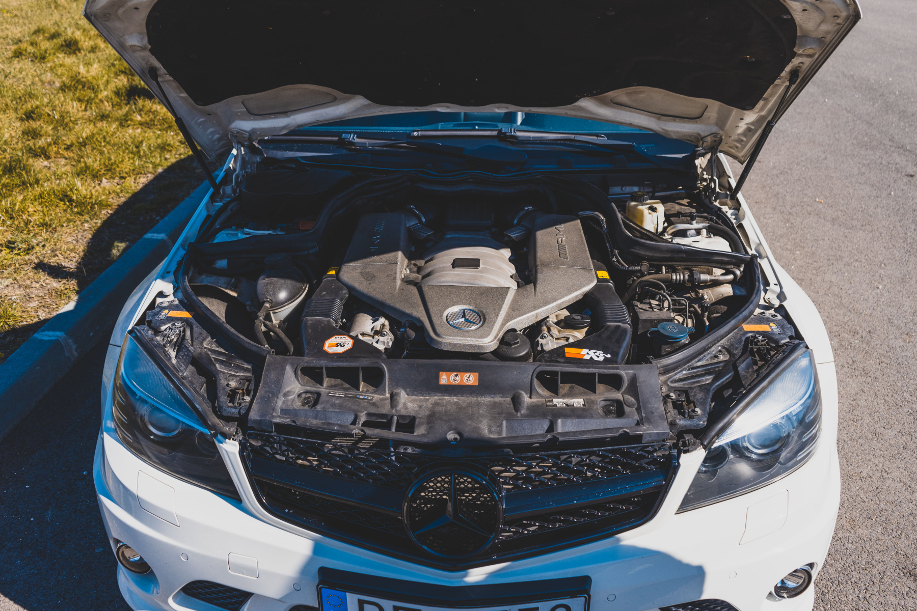 Az autó tökéletesen bele illeszthető az AMG szemlélet módjába, miszerint a lehető legnagyobb motort kell bele kanalazni az adott kaszniba. Az előd Mercedes-Benz C55 AMG-nél is tetten érhető volt hasonló logika a felépítésben, de ott a teljesítmény nagyjából megegyezett az aktuális konkurens modellekkel. Az utódnál viszont nagyot lépett előre a Stuttgarti cég, így a C63 akár 200 newtonméterrel nagyobb nyomatékot és közel félszáz lóerővel nagyobb teljesítményt is nyújthat, mint német riválisai.