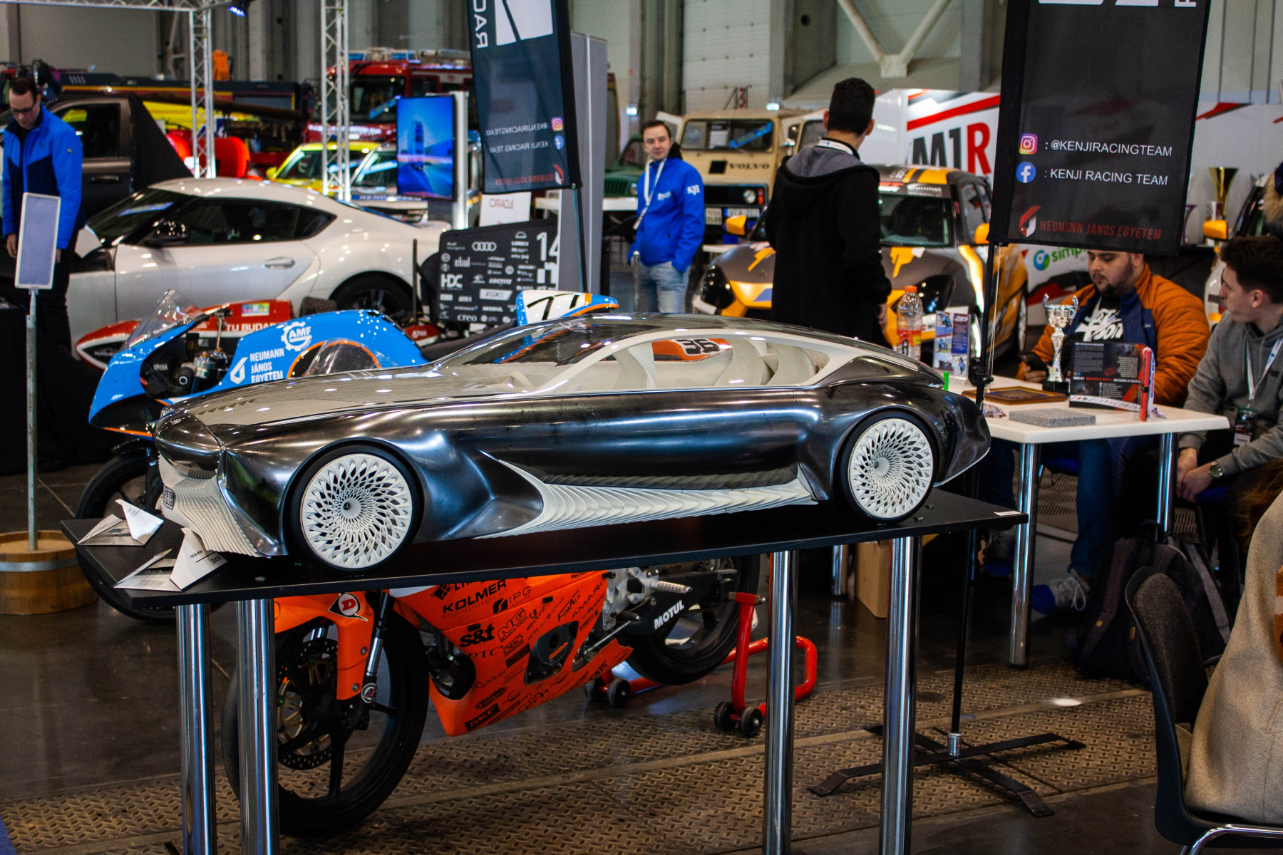 Azok sem panaszkodhatnak, akiket nem hoznak lázba a kétkerekűek, hiszen az AMTS azért túlnyomórészt mégiscsak autós rendezvény, így ezt a részét is igyekszünk megmutatni. Mi felülreprezentáltnak láttuk a tuning kispolszkikat (aminek örültünk), de láttunk hegesztett vaskutyákat, rajzszerűen megfestett autókat, Lambóra applikált bringa tartót és a Moholy-Nagy Művészeti Egyetem formatervezőivel is találkoztunk.